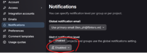 - Bước 2: Vào phần notifications, và bỏ chọn mục nhận update qua mail
