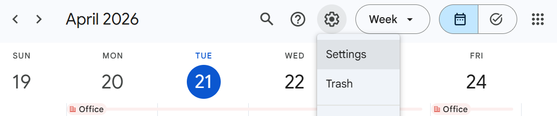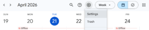 - Bước 1: Chọn setting trên Google Calendar