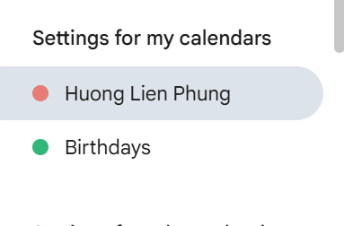 - Bước 2: Scroll xuống và chọn settings for my calendars ở bên tay trái