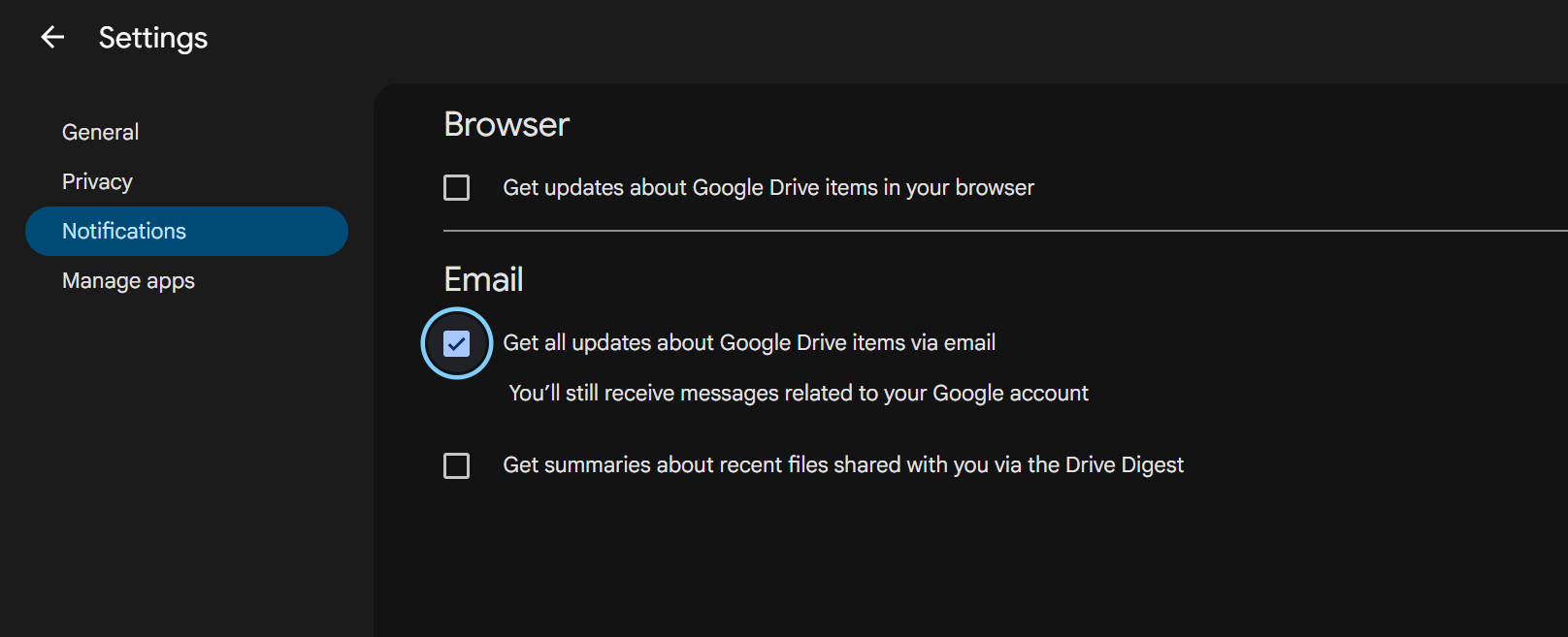 2. Không nhận email liên quan đến drive nữa